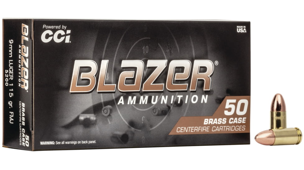 - CCI Ammunition Blazer Brass 9mm Luger 115gr. FMJ Pistol Ammo