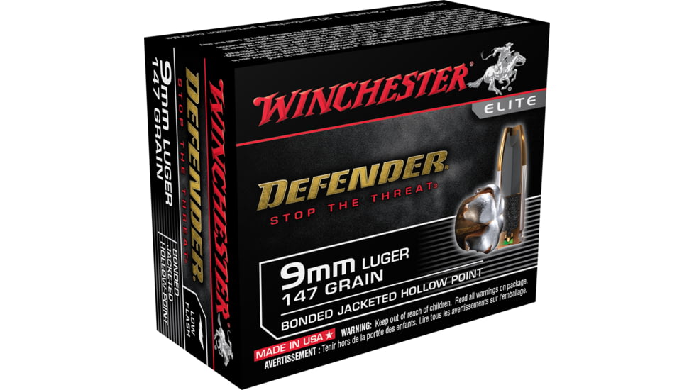 - Winchester DEFENDER HANDGUN 9mm Luger 147 grain Bonded Jacketed Hollow Point Brass Cased Centerfire Pistol Ammunition